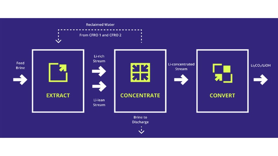 - Concentrate: CFRO technology concentrates lithium to battery-grade levels above 200,000mg/L