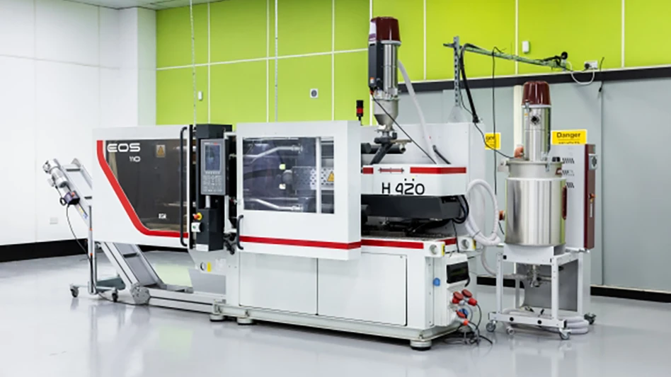 The 110-ton injection molding machine can produce thousands complex parts per week to satisfy customer demand for lower costs and shorter streamlined supply chains.