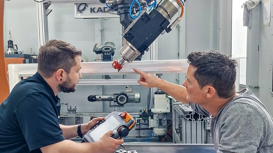 The size of the workpiece is also crucial to machining processes that make use of robots. Guiding the workpiece is favored for smaller parts. The robot guides the workpiece along fixed processing units. In a tool-guided strategy, the robot arm processes a workpiece firmly clamped in place. “For bigger workpieces, I’m much more skillful with the milling cutter in hand than if I have to move the bulky part,” explains Jannik Weiss, Sales Specialist Deburring & Robotics at KADIA.