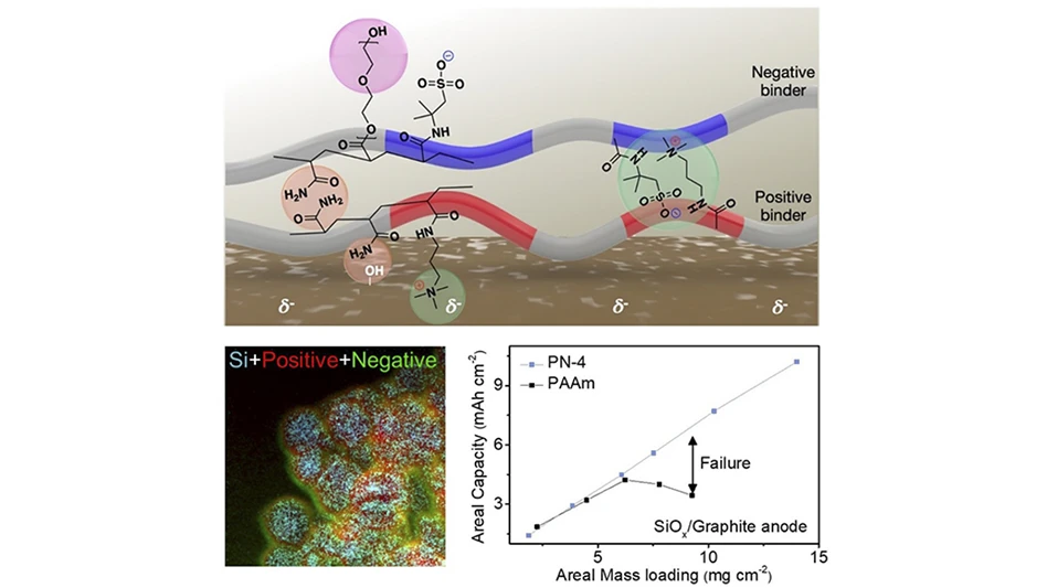 High-capacity anode materials such as silicon are essential for creating high-energy density lithium-ion batteries; they can offer at least 10 times the capacity of graphite or other anode materials now available. The challenge here is that the volume expansion of high-capacity anode materials during the reaction with lithium poses a threat to battery performance and stability. To mitigate this issue, researchers have been investigating polymer binders that can effectively control the volumetric expansion.
