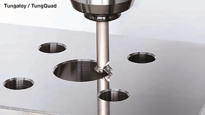 The new cutter utilizes the existing SDMT05 and SDHT05 TungQuad inserts, in grades AH725, AH140, and TH10 for a wide variety of workpiece materials. Three types of standard cutter bodies are stocked in 12mm, 14mm, and 22mm shank diameters. Special cutters are available upon request.