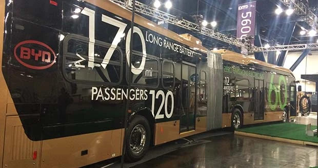 Houston, Texas –BYD Motors kicked off the 2014 American Public Transportation Association (APTA) Expo in Houston this week with a the unveiling of an electric articulated bus named “The Lancaster” after the city in California where it was designed and manufactured.