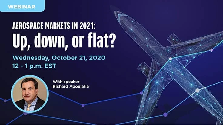 Register today to attend the FREE webinar, Aerospace markets in 2021: Up, down, or flat? taking place at noon ET on Wednesday, Oct. 21, 2020.