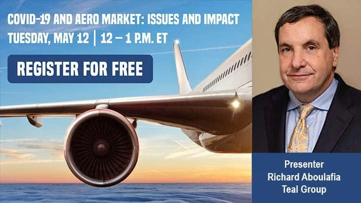 Richard Aboulafia, Vice President, Analysis, Teal Group Corporation, will discuss the impact of the COVID-19 pandemic on civil aviation and defense markets in this free webinar, May 12, 2020, 12 pm to 1 pm EDT.