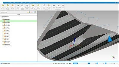 VCP starts by reading in CATIA, NX, Solidworks, STEP, or ACIS surface models. This data can be combined with information from composite design packages such as Fibersim and CATIA Composite Workbench. VCP adds material to fill ply boundaries according to user-specified manufacturing standards and machine limitations. Layup paths are linked together to form specific layup sequences and are output as NC programs for the automated layup machine.
