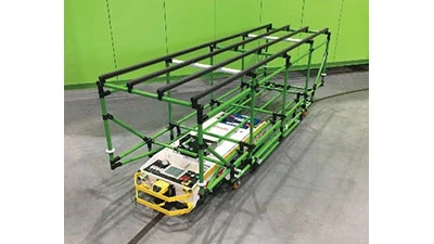 Creform Corporation designed and built a complete parts-handling system for an automotive supplier of injection molded parts. The system consists of a Creform BST AGV Model CA-A50060-NSI and Creform built carts. The AGV works as an automated tugger that runs along a 50mm wide magnetic tape guidepath, slips under stationary carts, and then carries the carts to designated stations.