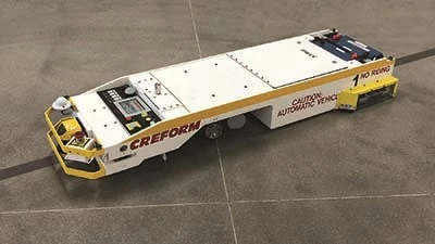Greer, South Carolina — Creform has introduced the 2-ton Super NSI AGV model, CA-Z40200-NSI, the company’s highest capacity tunneling tugger AGV. Initially designed and built for an existing automotive manufacturing customer, the AGV transports a steel dolly carrying an engine through the front suspension assembly process along a peel-and-stick magnetic tape guidepath.
