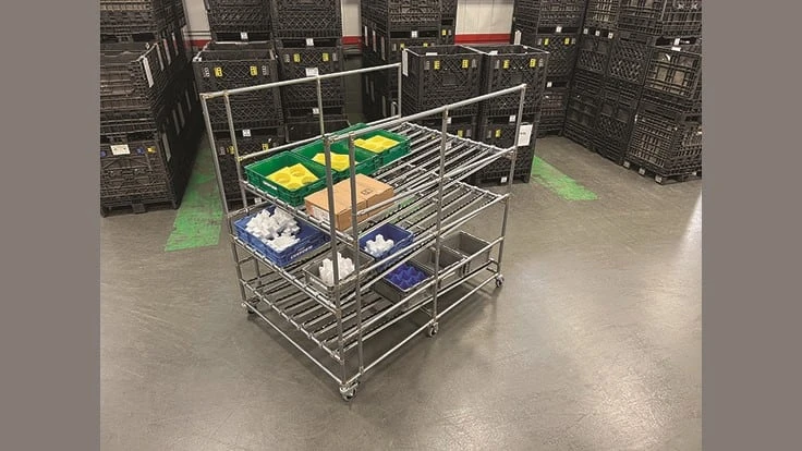 The unit was built with silver metallic pipe color, but as with all Creform flow racks, a wide variety of pipe colors are available, and accessories can include information sheet holders, label holders, tool storage, hooks to hang tools and other supplies. As well as built with feet, rather than wheels. Creform structures can be built with ESD for anti-static applications and are available as a kit, an assembled structure or in the component form for a complete DIY solution. Creform’s most noted benefit is its complete dimensional and capacity flexibility of its structures.