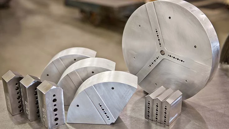 Dillon Manufacturing Inc. manufactures a complete line of standard and custom workholding solutions including chuck jaws, chucks, vises jaws, soft jaws, hard jaws, collet pad jaw systems, and chuck lubrication. With ample production capacities and processes, Dillon can manufacture large production runs of special jaws with the same speed and accuracy as small runs.