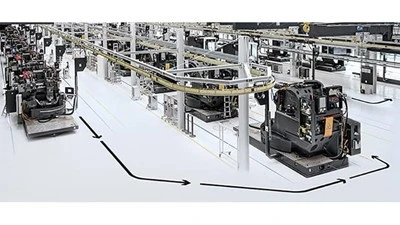 The AGVs can also be freely navigated via remote control. The flexible timing of the machines ensures an uninterrupted and trouble-free flow during the assembly process.