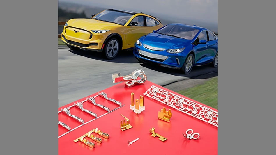 Produced from brass, tinned brass, nickel plated steel, copper plated steel, phosphor-bronze and many other materials including clad and inlaid alloys, ETCO Connectors for EVs part sizes can range from 0.004” to 0.090” thick with ±0.0005” tolerances, depending upon the material and configuration. The firm currently produces 1800 standard automotive parts that meet IATF 16949:2016, SAE J2031 & 2032, and ISO 9001:2015 standards.