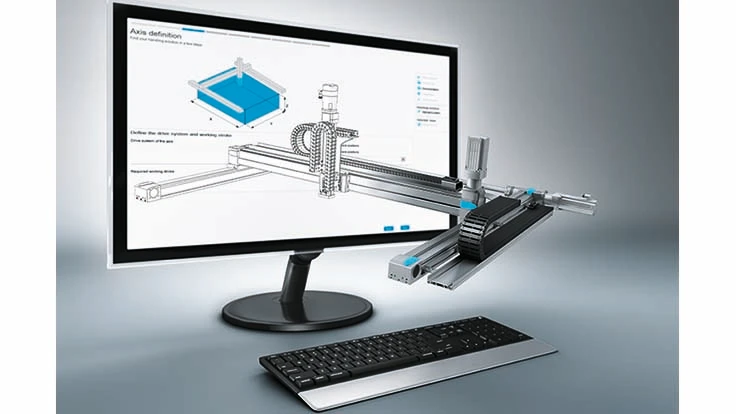 Equipped with basic application information such as load, cycle time, load voltage, and workspace size, a design engineer can specify a single axis, 2D or 3D Cartesian robot and receive a CAD drawing of the robot in about 20 minutes. Quotes arrive on average within 48 hours. OEMs have the option of ordering the systems fully assembled or as disassembled modules.