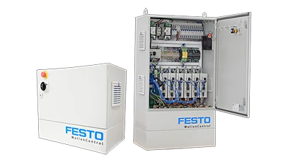 Festo now takes Handling Guide Online several steps further by offering the robotic controller, including the cabinet, components, and wiring, as an enhanced solution. The control cabinet arrives fully wired and ready to be installed. The OEM simply adds power, Ethernet connection, IO, and wiring to the gantry motors. OEMs utilize a function block to fill in key motion parameters. No specialized or manufacturer specific programming knowledge is required. Basic motion can be taught through a webserver or IOS/Android app.