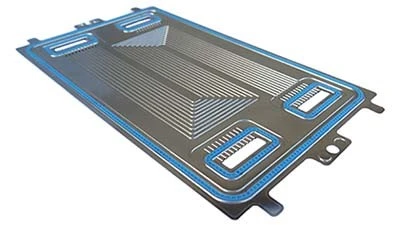 In 2016, Freudenberg installed new equipment to produce fuel cell gasket-on-plate components that integrate an elastomer seal onto a stainless steel bipolar plate. The customer, a fuel cell manufacturer, combines this component with electrolytic membranes and gas diffusion layers into an assembled fuel cell stack that powers fork lifts and tow tractors.
