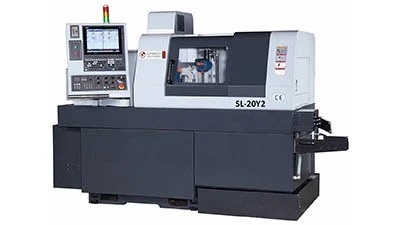 The Ganesh multi-tasking CNC Swiss lathes start with the 8-axis SL-20Y2 20mm machine. Ganesh Machinery also offers 32mm and 42mm Swiss CNC lathes.