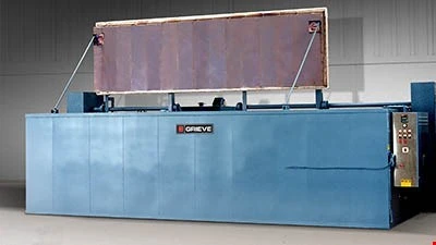 Round Lake, Illinois – The No. 895 1,000°F (538°C) top-loading oven from Grieve is currently used for curing composite materials in large molds at a customer’s facility. Workspace dimensions of this oven measure 168" x 48" x 48". The120kW tubular heating elements are Incoloy-sheathed, while a 12,500cfm, 10hp recirculating blower provides horizontal airflow.