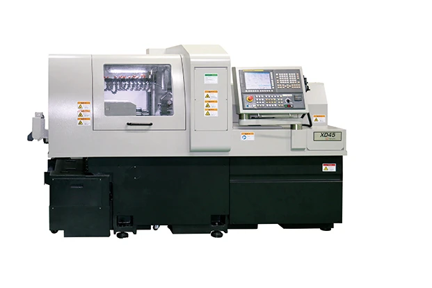 The new XD42 offers the option of a bar lifting unit for the automatic loading and replenishing of heavy bar stock, a huge convenience for the machine operator. Equipped with two anti-vibration units that are specially designed for the V-block (Hybrid Static Block) to guide the bar stock efficiently. Other options include specialized tools, chip conveyor with a larger coolant tank that are compatible with XD38II model. With customers’ convenience in mind, the XD42 is an efficient model for setting tools a short distance from the center of headstock. A true work-horse with the familiar tooling layout without a turret.