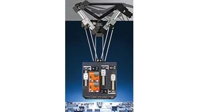 The complete system has an installation space of up to 420mm in diameter and can carry up to 5kg at low speeds. The unit is constructed with aluminum and plastic materials and reaches a maximum pick rate of 60 per minute. The unit weighs 15kg, has a working area diameter of 380mm (at 75mm), and a maximum process force of 100N.