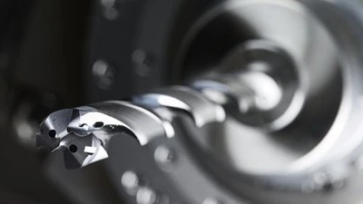 Flutes are smooth and shiny, highly polished after final machining – a process Kennametal engineers have found greatly improves chip evacuation and reduces wash out near the tip. KenTIP FS has four coolant holes – two at the tip and two in the chip gullet directly behind the head. This multicoolant approach provides greater coolant volume to prevent chip packing while simultaneously drawing heat away from the cutting zone, prolonging tool life, and improving hole quality.
