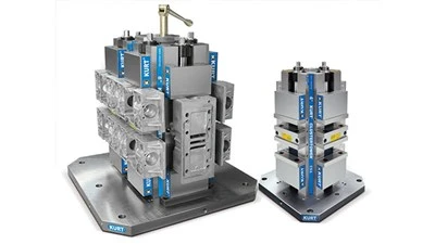 A complete line of high-density CarvLock workholding towers are for precision machining with 8 or 12 clamping stations in both manual and hydraulic models. Equipped with easily changeable jaws, these Kurt towers provide maximum setup flexibility and fast changeover between jobs.