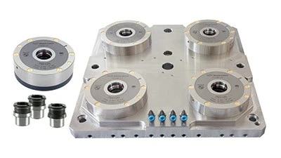 The system is comprised of flanged cylinders, tapered plugs which can be easily incorporated into a machine shops fixturing systems as needed. Or they can be integrated into preconfigured base plates and pallets available from Kurt.