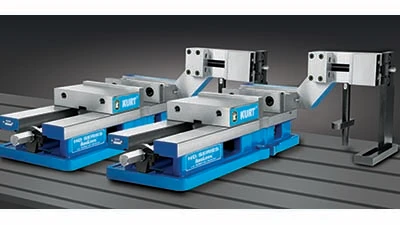 Minneapolis, Minnesota – SideWinder vises mount directly to the back of 6” or 8” Kurt vises and make an ideal setup when configured in tandem with two or more vises. The Kurt SideWinder vise provides vertical workholding without interfering with an existing host vise or the machine spindle. SideWinder vises expand the capabilities for 6” or 8” vises by adding vertical clamping above and behind the host vise and provide easy spindle access for secondary or final machining operations.