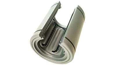 The shell, bearing retainer and end caps are made from 440 stainless steel and coated with armoloy thin dense chrome (TDC). Armoloy is a hard (78Rc), coating with a micro-nodular surface texture. The coating's nodular finish reduces the amount of surface area in contact with the SiNi balls reducing friction and extending life.
