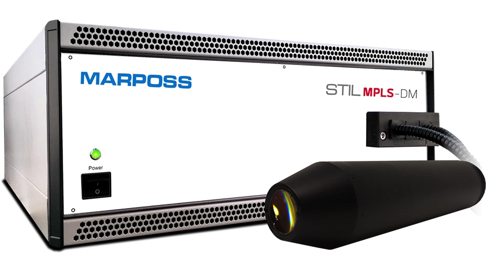 Marposs, a world leader in measurement, inspection, and test technologies, announced the availability of its high-performance STIL MPLS-DM sensor, the newest member of its Chromaline sensors family. This non-contact sensor enables very fast, high-resolution gauging of distance, roughness, thickness, and shape of all materials including transparent and polished mirror surfaces such as glass, plastic, silicon wafers, liquids, and roll-to-roll transparent or non-transparent film as used in EV battery covers.