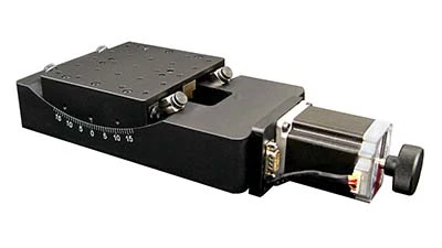 The 4.724” x 5.118” (120mm x 130mm) table has ±15º of rotation at speeds up to 10º/sec, and features a precision ground worm gear with a 304:1 ratio and a resolution of 0.0005º with a 10 micro-step per step stepper motor driver; the stage is also available with a servo motor and optical encoder.