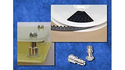 PEM SMTSSS ReelFast SNAP-TOP standoff fasteners hold printed circuit boards (PCBs) securely in assemblies without requiring mating screws or other loose threaded hardware to complete attachment.