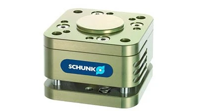 Morrisville, North Carolina – The new Schunk AGE-Z 2 compensation unit is for palletizing, joining, and workpiece assembly. It enables a Z-axis compensation for different pickup and stacking positions. The compensation unit is guided by ball bearings without play for great moment capacity at minimum size. Compression springs define the rigidity of the unit and can be increased by additional actuation of the pneumatic cylinder.