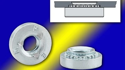 The self-clinching technology adds even more reliability for the attachment. The locknuts install permanently in host metal sheets to become integral parts of an assembly; will not loosen or fall out, never have to be restrained from rotation with a tool, and never have to be handled again. Compared with conventional chemical adhesives or affixed patches, the locknuts can help save time and money during production by minimizing the number of required assembly steps and materials.