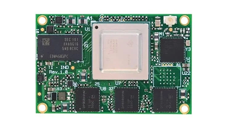 The AM64x SOM is aimed at applications that require a combination of precise real-time processing and application processing and comes equipped with two Cortex A53 cores for OS-level and applications processing, up to four Cortex R5F cores for real-time computing, servo control and functional safety, and an isolated Cortex M4 MCU channel for error monitoring. This SOM also packs an integrated MCU subsystem and diagnostic libraries, inline ECC, an isolated Cortex-M4 core that can work independently from the SoC, secure boot with hardware-enforced root of trust and more.