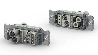 All configurations, whether for panel mount or housing applications, ensure a reliable connection for signals, power, and pneumatic coupling for up to 10,000 mating cycles. Medium and high current contacts up to 350A are available, offering IP2X protection on both the male and female side, together with leak-free pneumatic couplings up to 15 bar. The quality of the contacts remains at the highest level throughout the product life cycle, providing constant low contact resistance and stable performance even in the presence of shock and vibration.