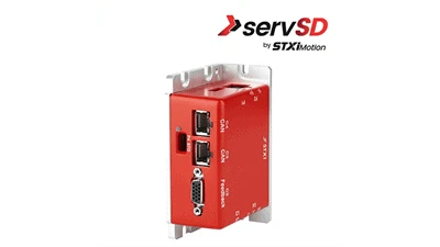 STXI Motion, a global motion control and servo solutions company, introduces the servSD ready-to-connect low-voltage servo drive, aimed at applications such as automated guided vehicles/autonomous mobile robots, electronics assembly, and medical equipment.