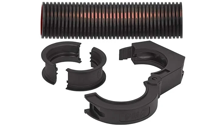 Other benefits of the PMA XR90 multilayered conduit include its selection of support brackets, half shells and tube clamps, providing a complete cable protection solution. They are easy to fit and offer space-saving designs that enable running cable in maneuverable automation applications. The half shells and tube clamps offer lower mechanical load, which reduces torsion.