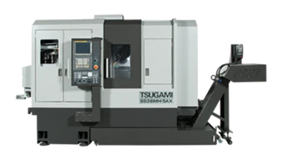 Windsor, Connecticut – At IMTS 2018 display in Booth #339410Tsugami/Rem Sales will debut the SS38MH-5AX, a 38mm chucker-convertible, B-axis sliding headstock lathe that performs full 5-axis simultaneous machining. The Tsugami SS38MH-5AX features a 40-tool magazine, 10 tools on the back-tool post, and an optional 2 tools on the deep hole drill holder. The linear glass scales on the X1-, Y1-, Z1-, and X2-axis slide is provided as standard, for high accuracy machining and repeatability.