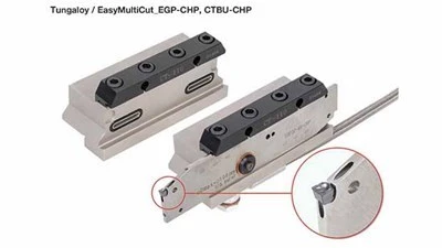 Iwaki, Japan – Tungaloy Corp. has expanded EasyMultiCut: the EGP-CHP blade and the CTBU-CHP block, both of which have a coolant hole for high-pressure internal coolant supply.