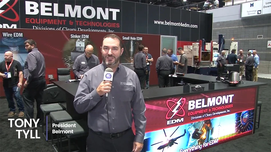 Tony Tyll, president, Belmont Equipment & Technologies, demonstrates the company's EDM technologies.