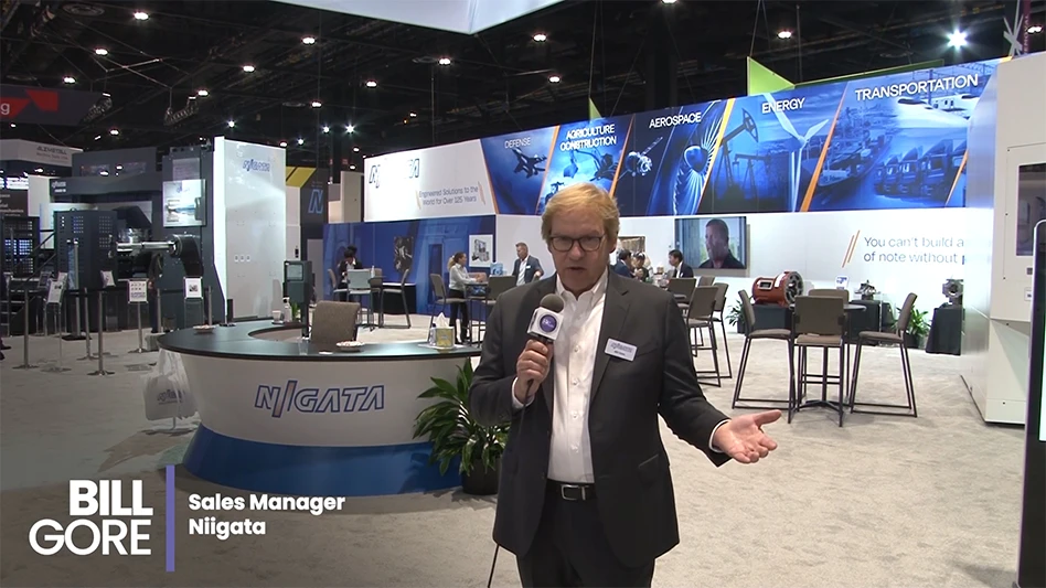 Bill Gore, sales manager, Niigata, demonstrates the company's machining centers.
